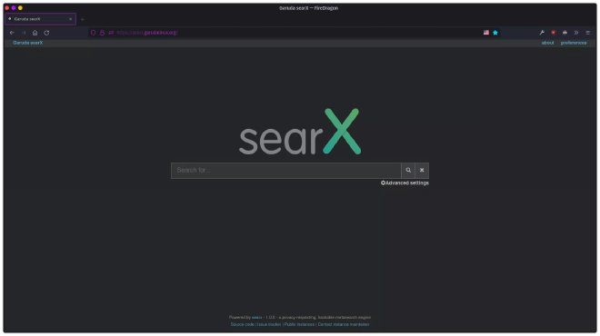 - Uses the self-hosted Whoogle instance of Garuda as the default search engine
